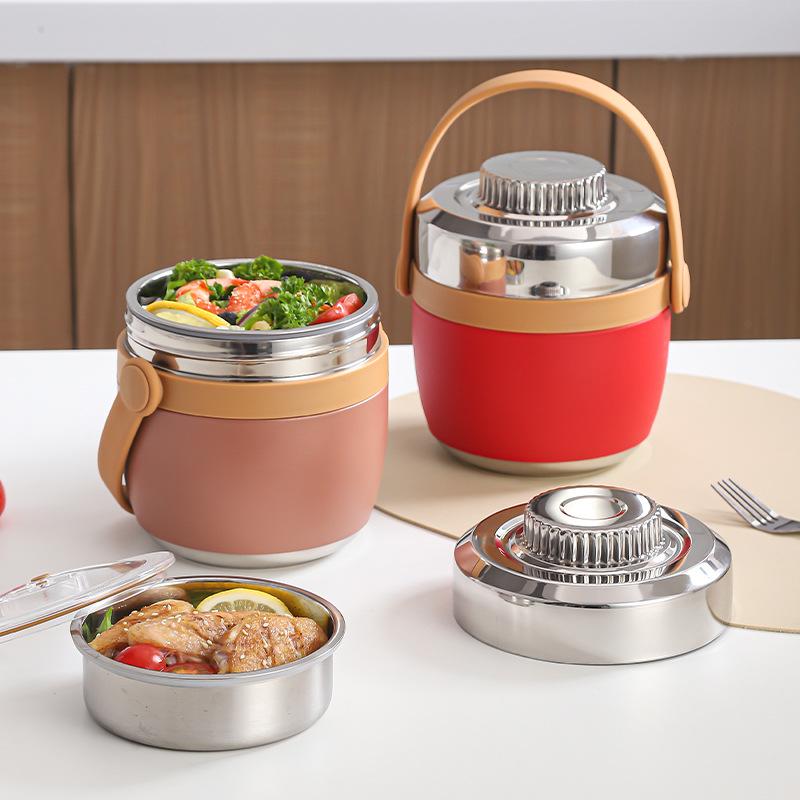304 Stainless Steel Insulated Double-Layer Lunch Box with Portable Handle and Custom Logo