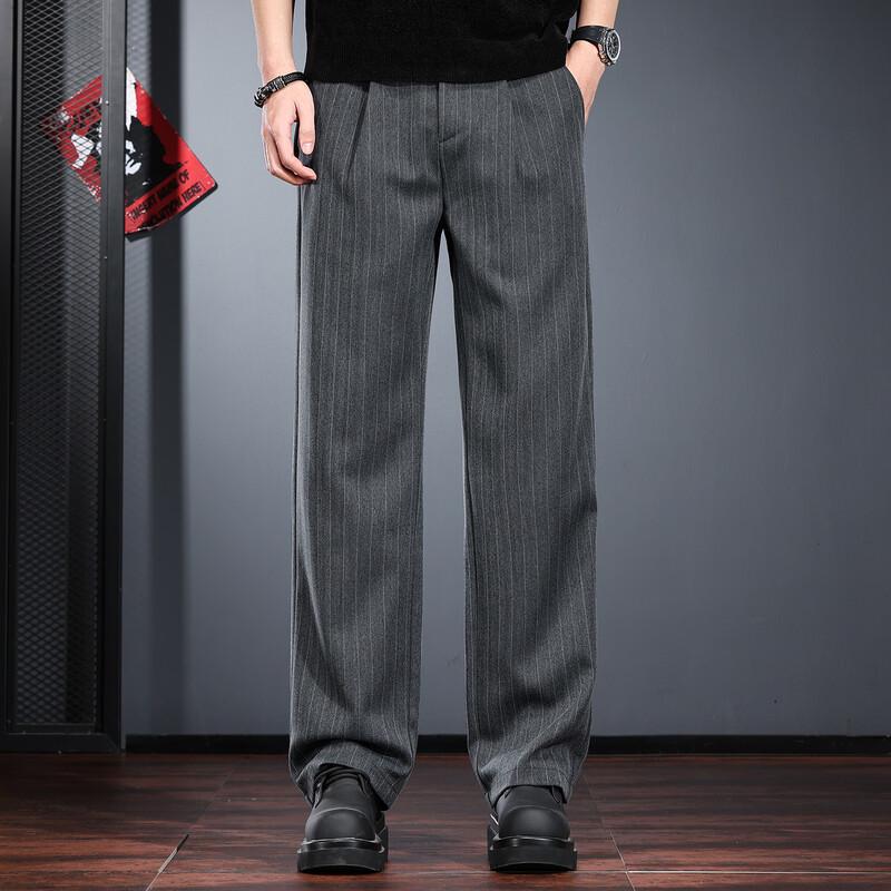 JIELEINUO Men's Old Money Style Striped Loose Straight-Leg Trousers
