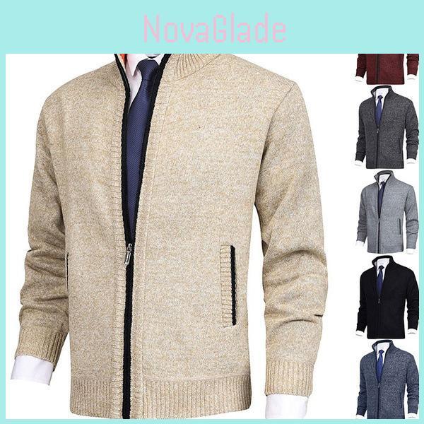 New Arrival Men's Solid Color Stand Collar Fashion Cardigan Sweater Knitted Jacket Plus Size Sweater Men Autumn/winter)