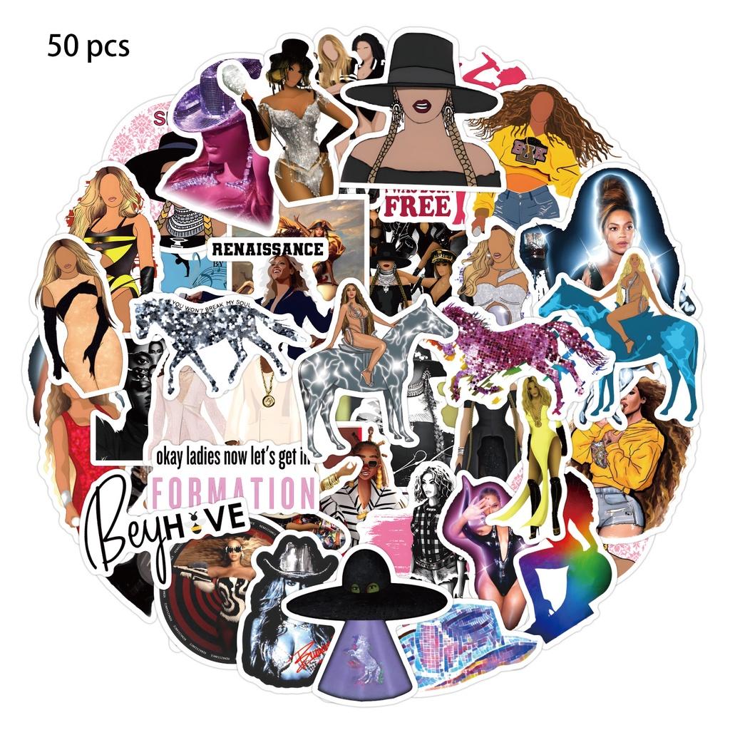 50pcs Beyonce Renaissance Decorative Car Skateboard Waterproof Stickers High Definition Printing Waterproof