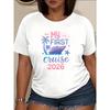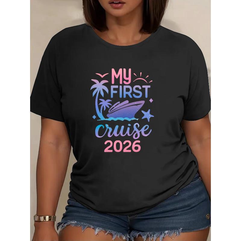 First Cruise Printed T-Shirt Women's Casual Short Sleeve Round Neck Versatile Daily Home Wear Top