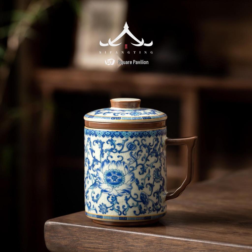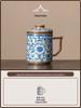 Blue & White Lotus Pattern Ceramic Mug with Lid - Chinese Style Gift Box Set for Home or Office
