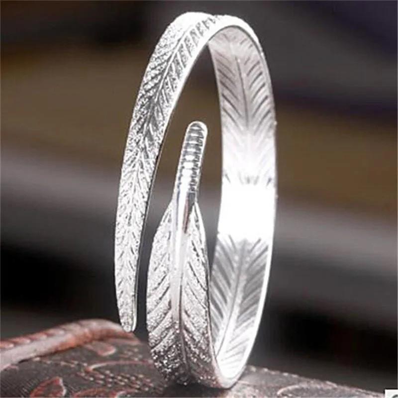 Women Bracelets Sterling Silver Feather Jewelry Accessories Girl Kids Gifts
