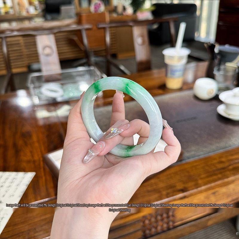 Young Master Mu 'Snow-Filled Chang'an' High-End Myanmar Jade Bangle for Women - Milk White with Flecks, Free Shipping