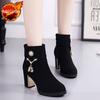 Black Suede Rhinestone Heeled Woman Short Shoes Round Toe Autumn Winter Warm Ankle Boots for Women High Quality Y2k Booties Sale