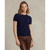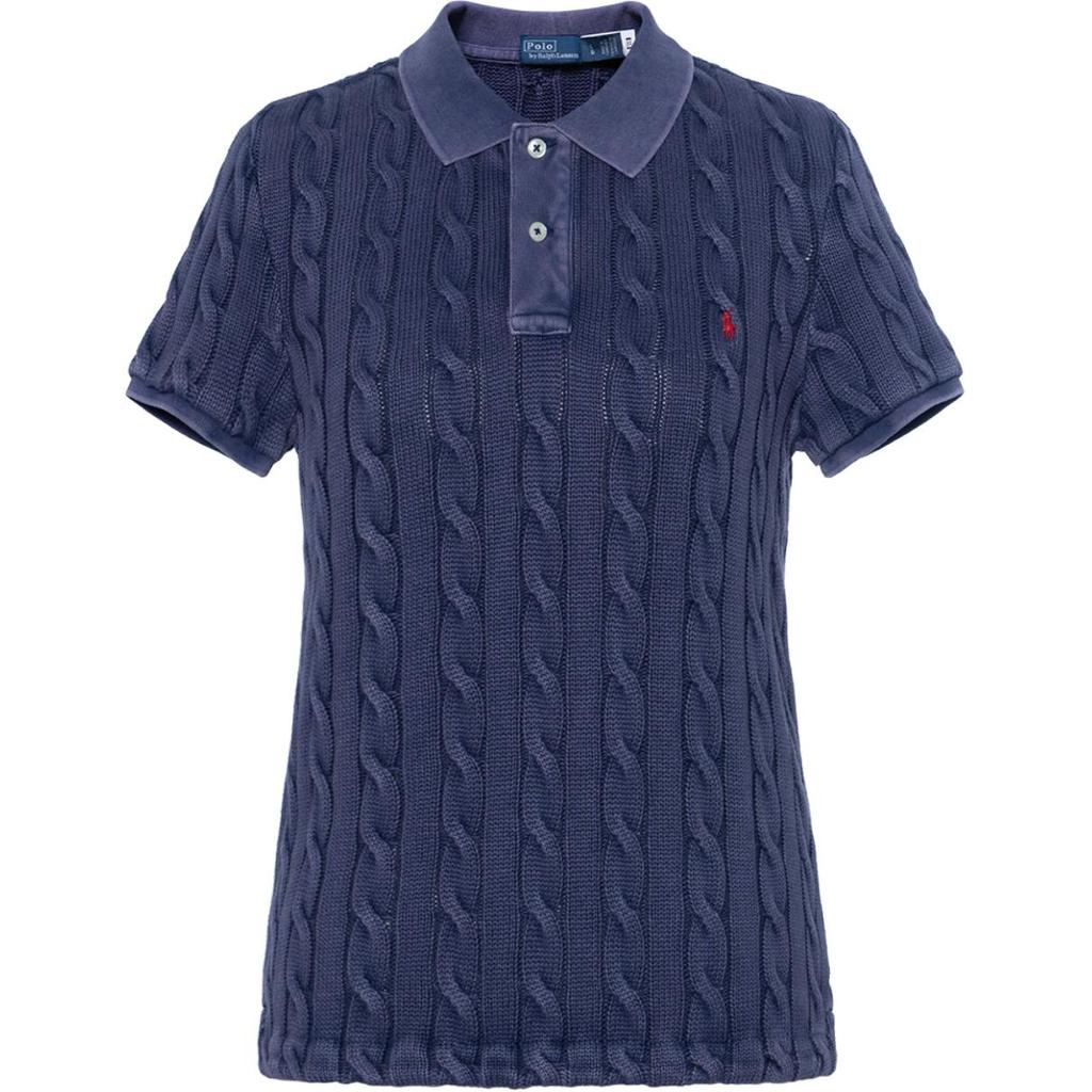 Polo Ralph Lauren FW22 Slim Fit Solid Cable Knit Short Sleeve Polo Shirt Women tops Blue WMPOKNINCU20630-410
