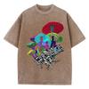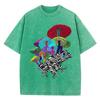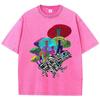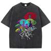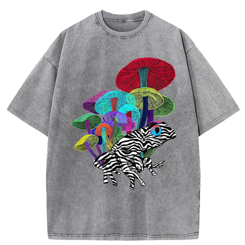 Neon Style Frog With Mushrooms Print Women Washed T-Shirt Loose O-Neck T Shirts Cotton Clothes Vintage Short Sleeves