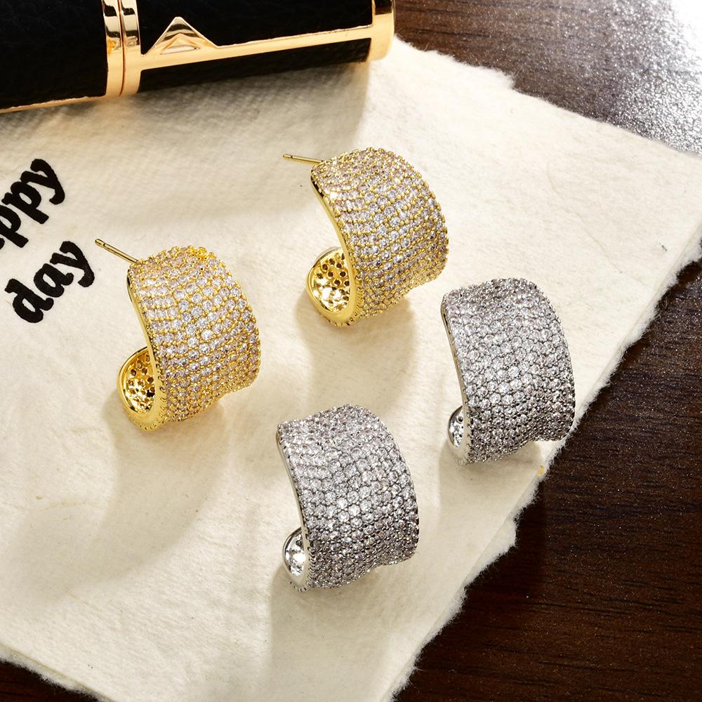 2026 Glamorous Collection: Sparkling Full Zircon Micro-Pave Wide C-Shape Earrings - Light Luxury High-End Jewelry