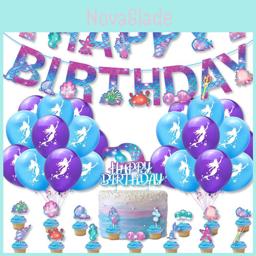 Mermaid Themed Birthday Party Decorations Beautiful Mermaid Birthday Banner And Cake Toppers