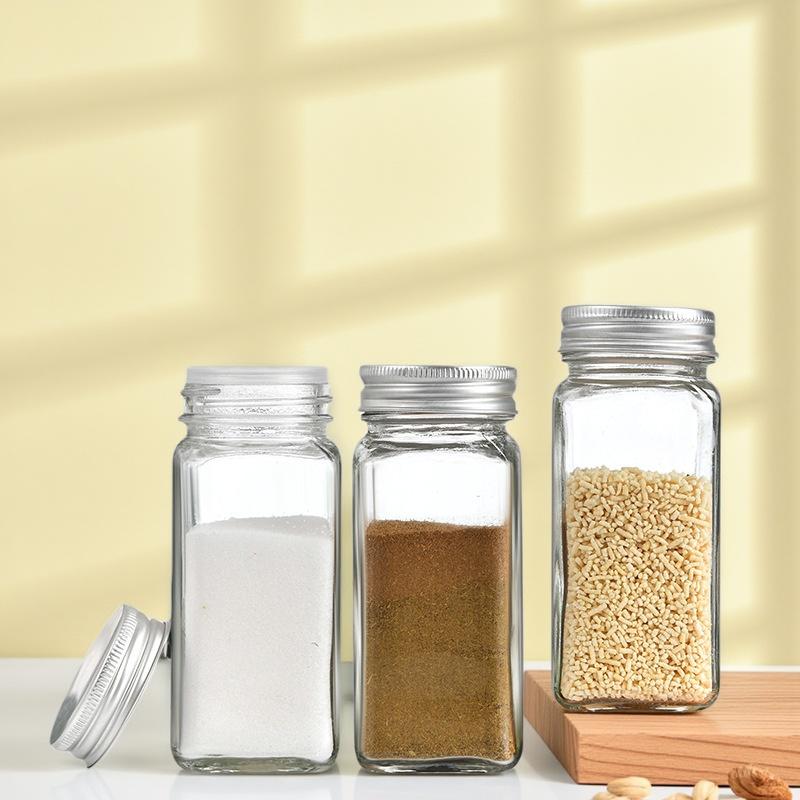 Glass Sealed Spice Jars with Lid Square Spice Jar Food Storage Sealing Jar Transparent Glass Dispensing Bottles for Coffee Sugar