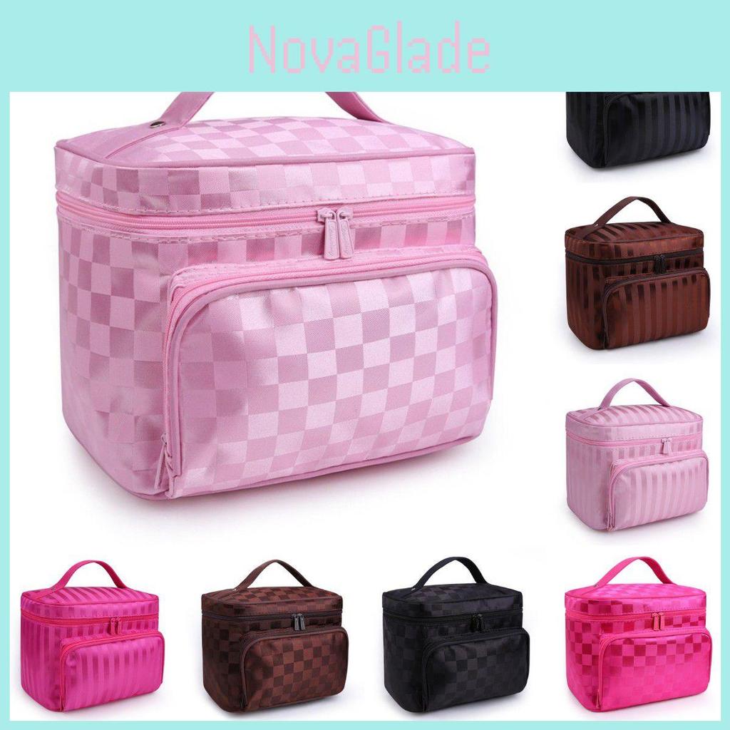 Fashionable Striped Women's Waterproof Cosmetic Bag With High Capacity