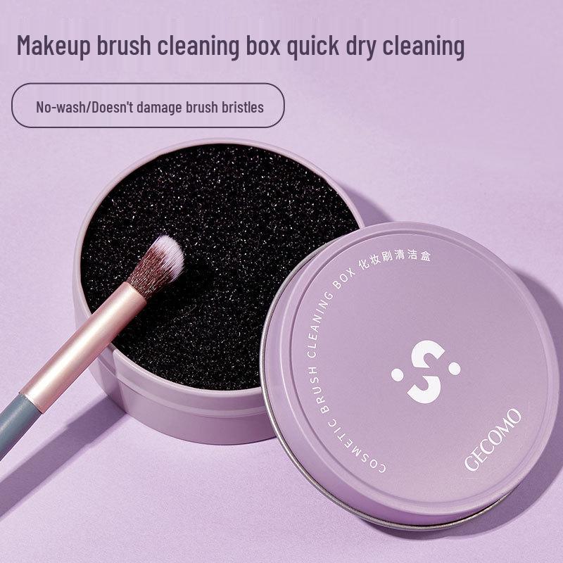 GECOMO No-Rinse Makeup Brush Cleaning Box with Sponge - Quick Powder Removal Tool