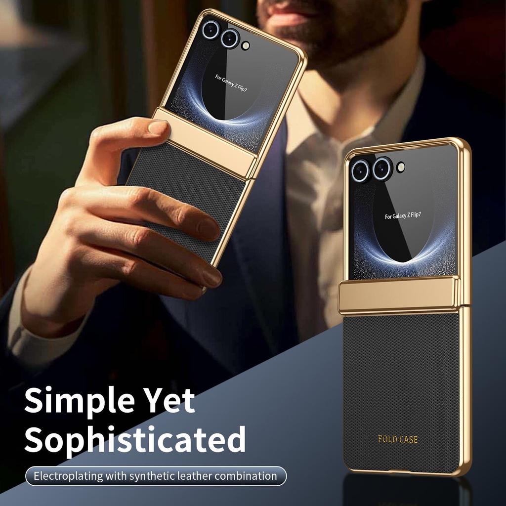 Cross-border Compatible Samsung Z Flip7 Electroplated Diamond Leather Phone Case with Foldable Full Coverage Hinge.