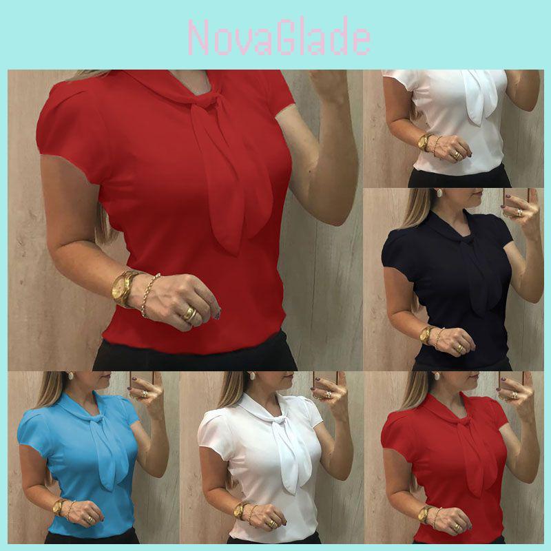 Versatile Fashion Women Short Sleeve Bow Chiffon T Shirt Blouse For Summer Casual Wear