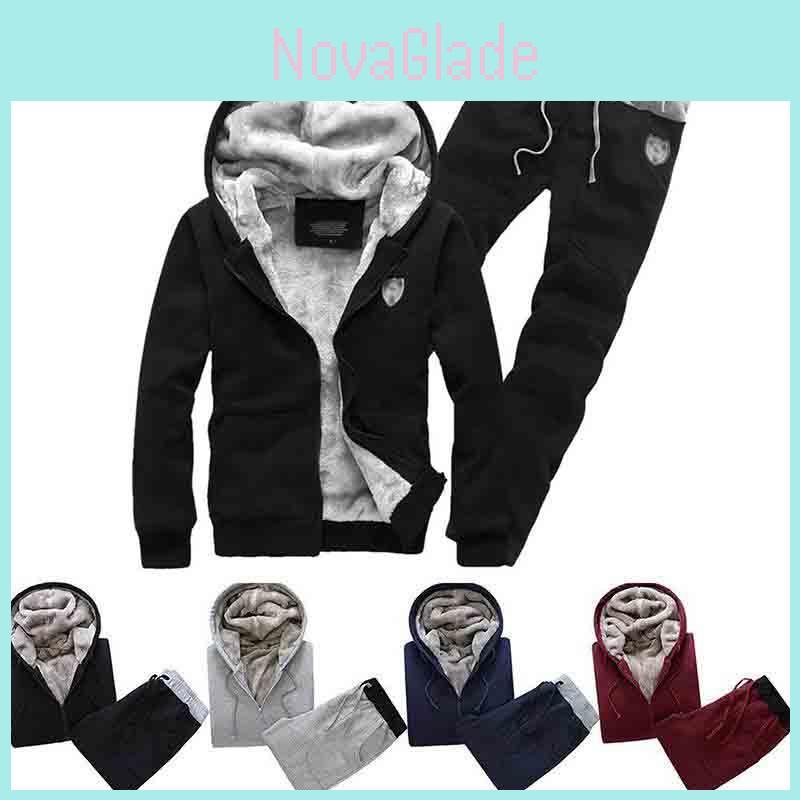 Trendy Men's Casual Thickened Fleece Hoodie Set With Stylish Hood And Zipper Closure