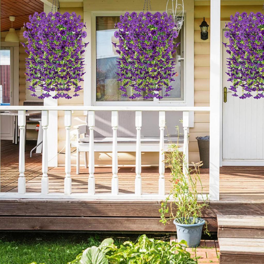 Fake Petunias 2 Pieces Flowers Patio Petunias Decor Outdoor Fake Plant Decoration For Porch Patio Garden Yard Wedding Party