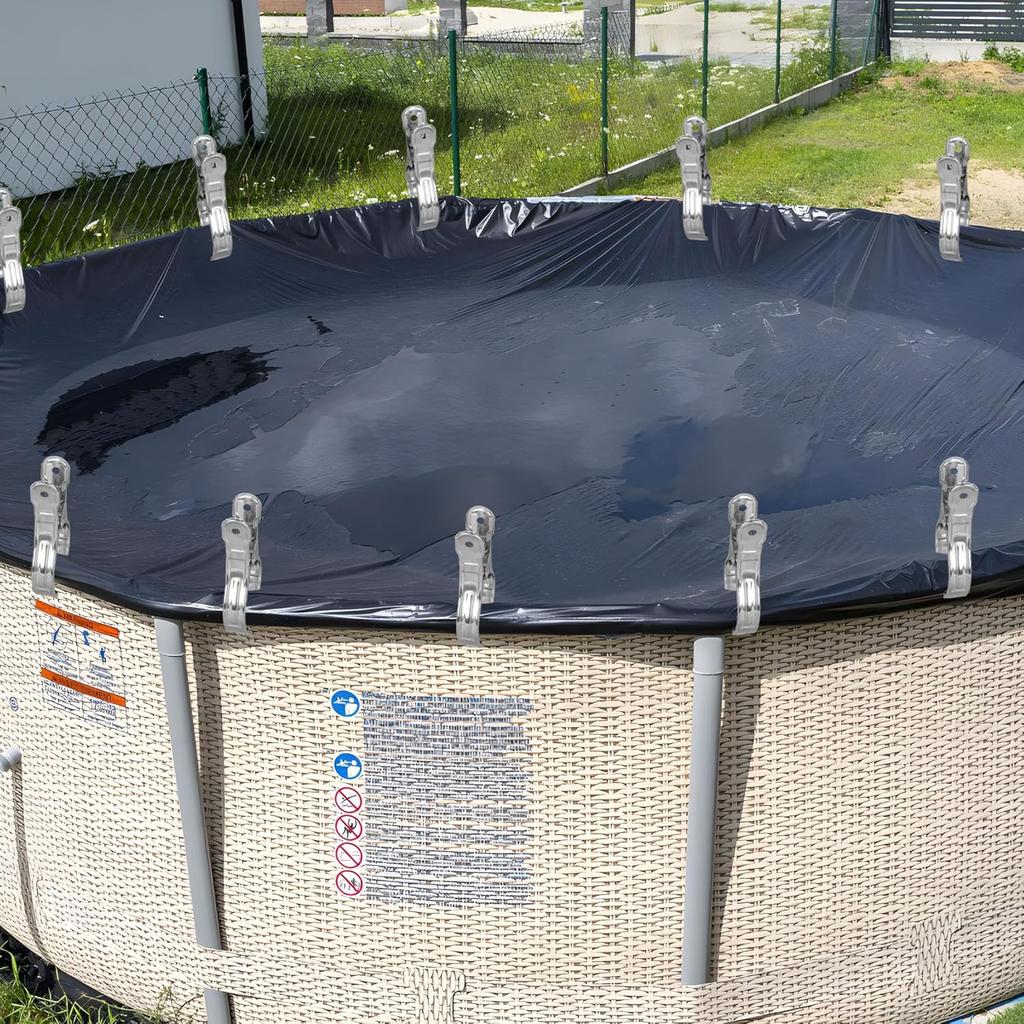6-30Pcs Durable Stainless Steel Pool Cover Clips with Blue Plastic Handles-Heavy Duty Windproof Spring Clips for Secure Above
