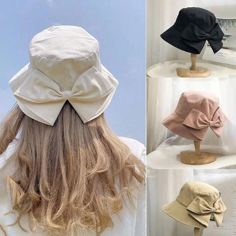 Women's Bowknot Fisherman Hat Spring Summer Outdoor Sun Hat Face Covering Double-Sided UV Protection Sun Hat Double-Sided Solid Color Foldable Sun