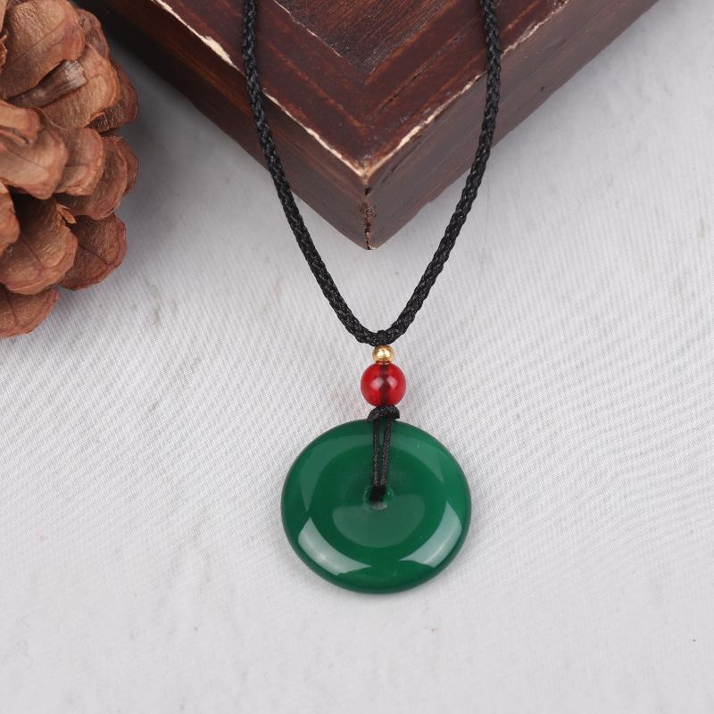Natural Green Jade Donut Charm Necklace Ice Embellish Green Pendant Necklaces Simple Jewelry For Women Men Gifts