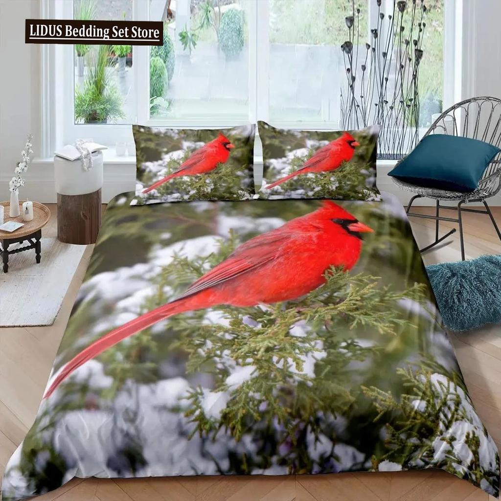 Comforter Cardinal Red Bird Bedding Set For Child Youth Pine Tree Comforter Animal Snow King Size Soft