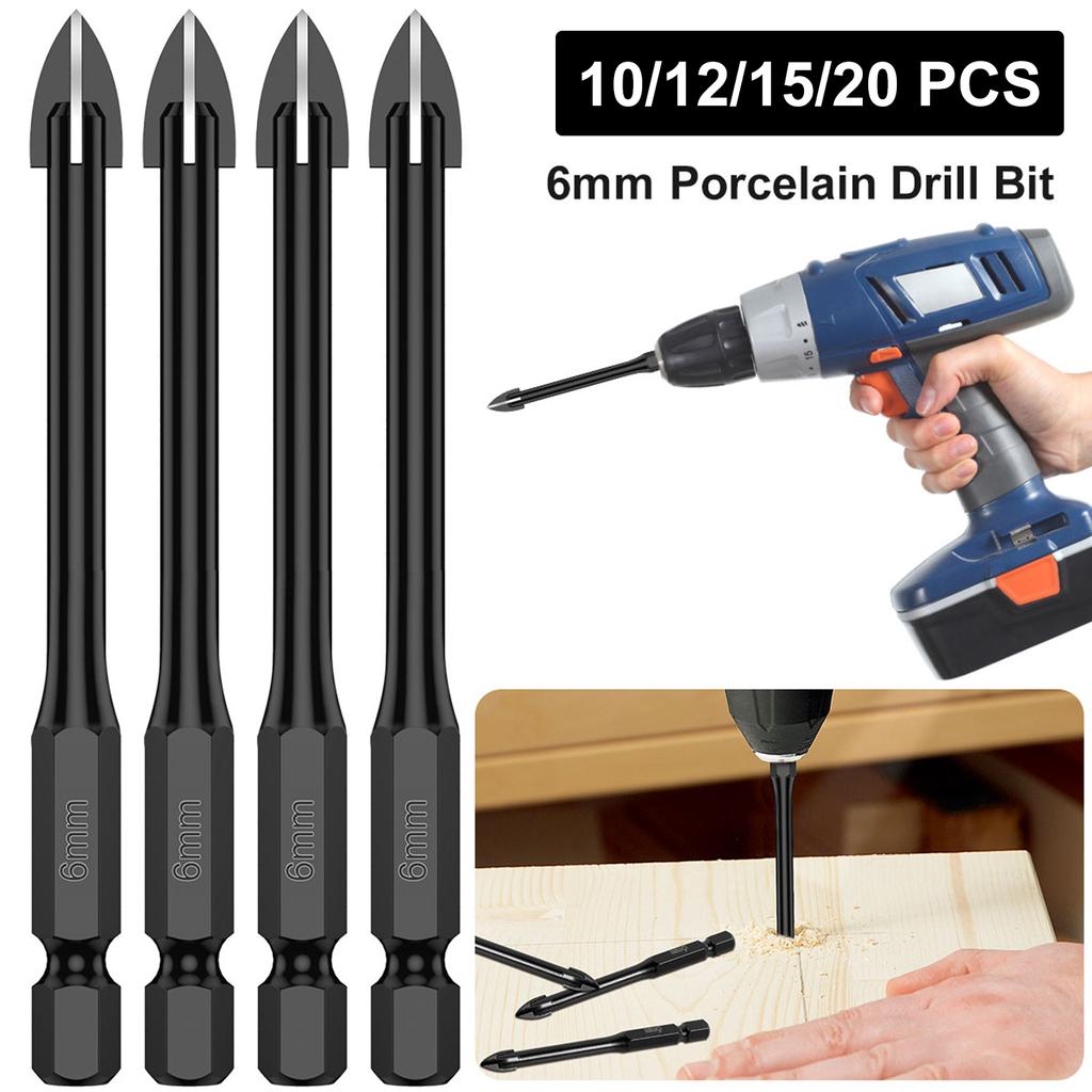 10/12/15Pcs 6mm Cross Hex Drill Bit Set For Tile Porcelain Glass Multifunction Tile Porcelain Drill Bit Kit Tool Carbide Drills