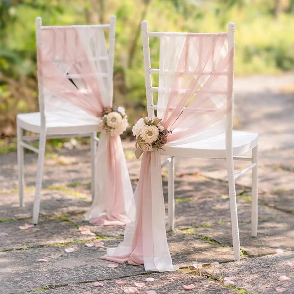 50PCS 17x250cm Chiffon Wedding Chair Sashes Setting Sage Green Gauze Sheer Vintage Birthday Party Festival Chair Decoration