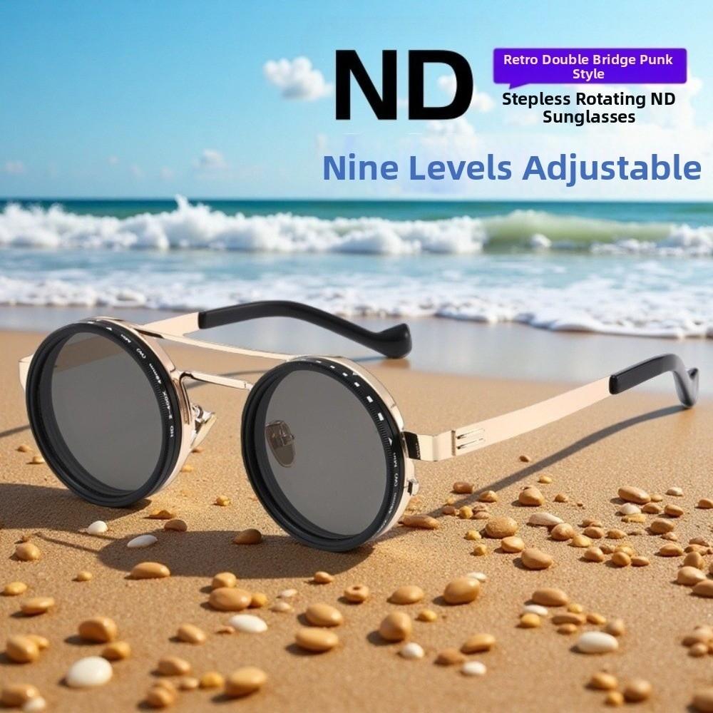 Round Adjustable Dimming Glasses 9 Level Dimming Fishing Sunglasses Outdoor Eyewear Men Women