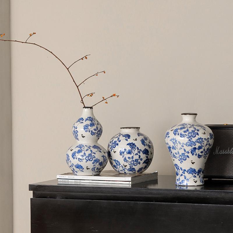 Ceramic Vase Blue and White Porcelain Gourd-shaped Teapot Flower Vase Flower Arrangement Accessories Chinese-style Retro Bottle
