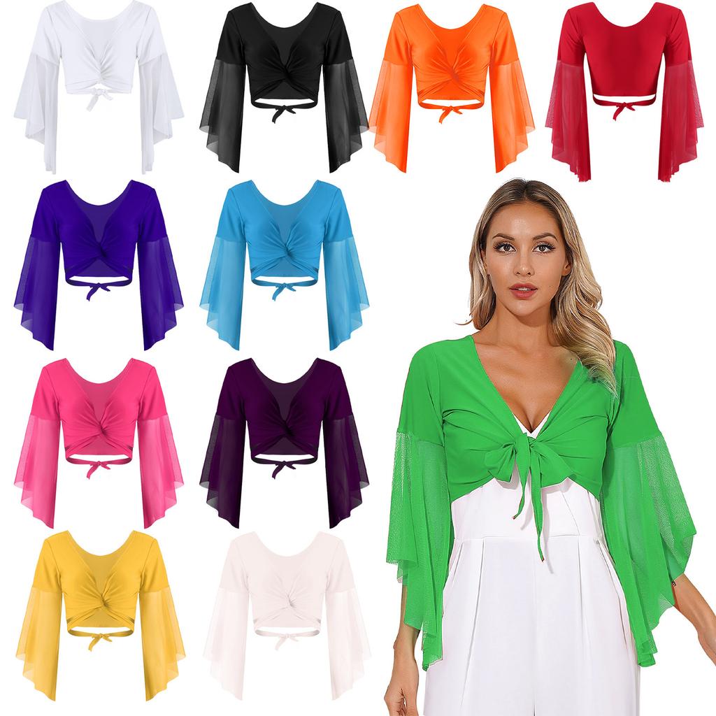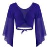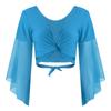 Women 3/4 Tulle Flared Sleeve Crop Top Dancewear Lace-up Indian Belly Dance Costume Tops