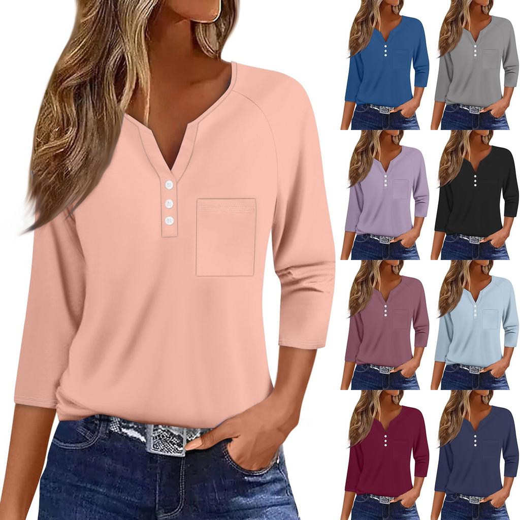 Ladies Casual Fashion V-neck Loose Versatile Color Printed Three-quarter Sleeves