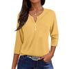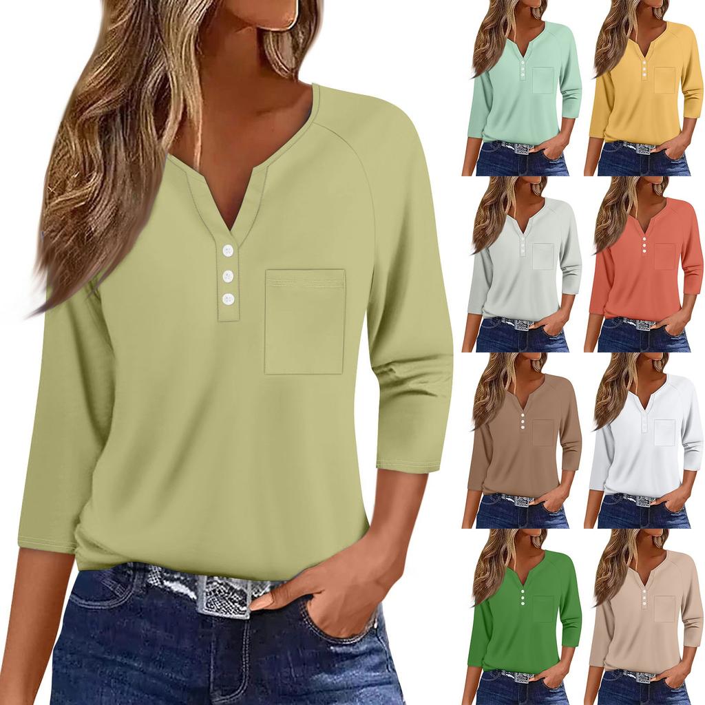 Ladies Casual Fashion V-neck Loose Versatile Color Printed Three-quarter Sleeves