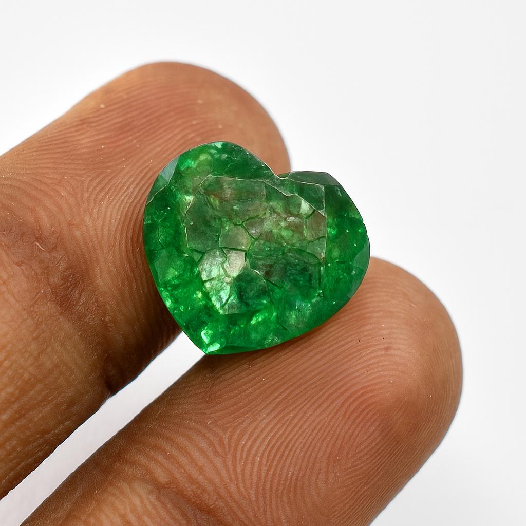 9.95 Ct Heart Cut Certified Natural Colombian Green Emerald Loose Gemstone