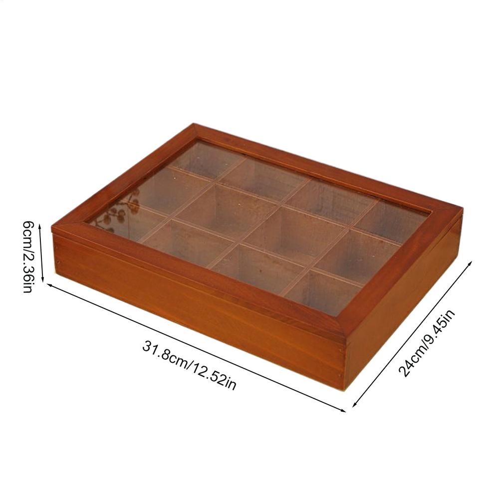 Tea Bag Storage 12-Compartments Wooden Box Tea Storage Organizer with Clear Lid for Home Kitchen Coffee Pantry Snack Packet