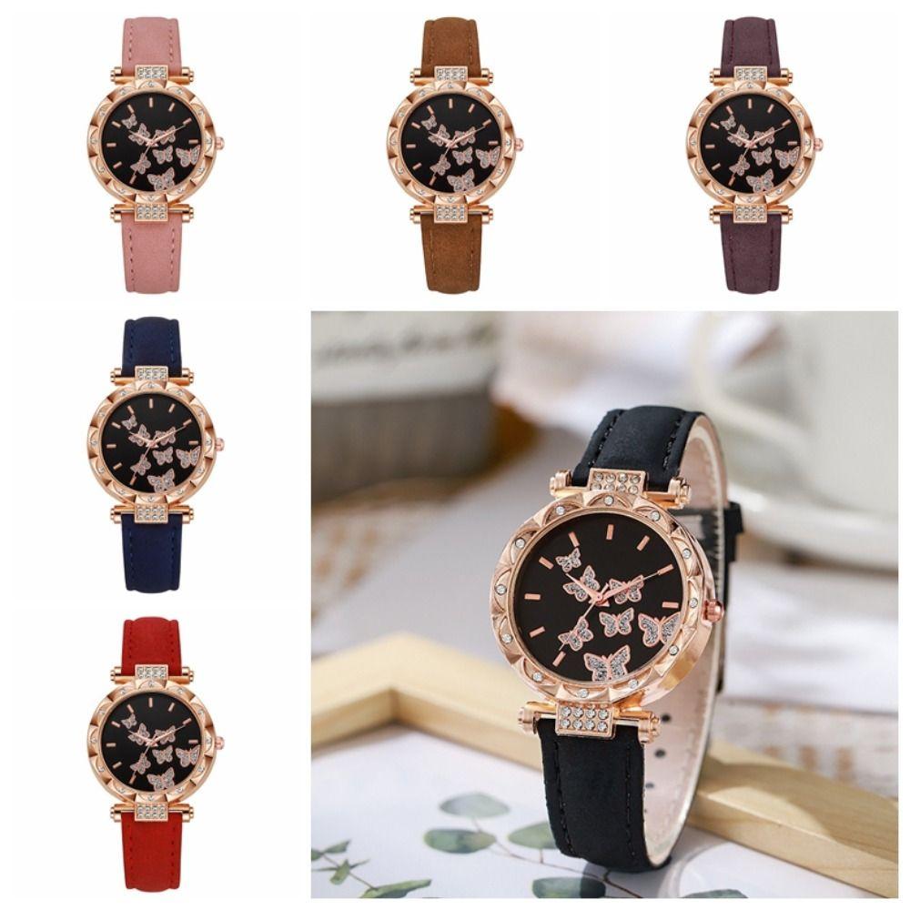 Butterfly Dial Quartz Watch Rhinestone Wristwatches Elegant Women Watches Women