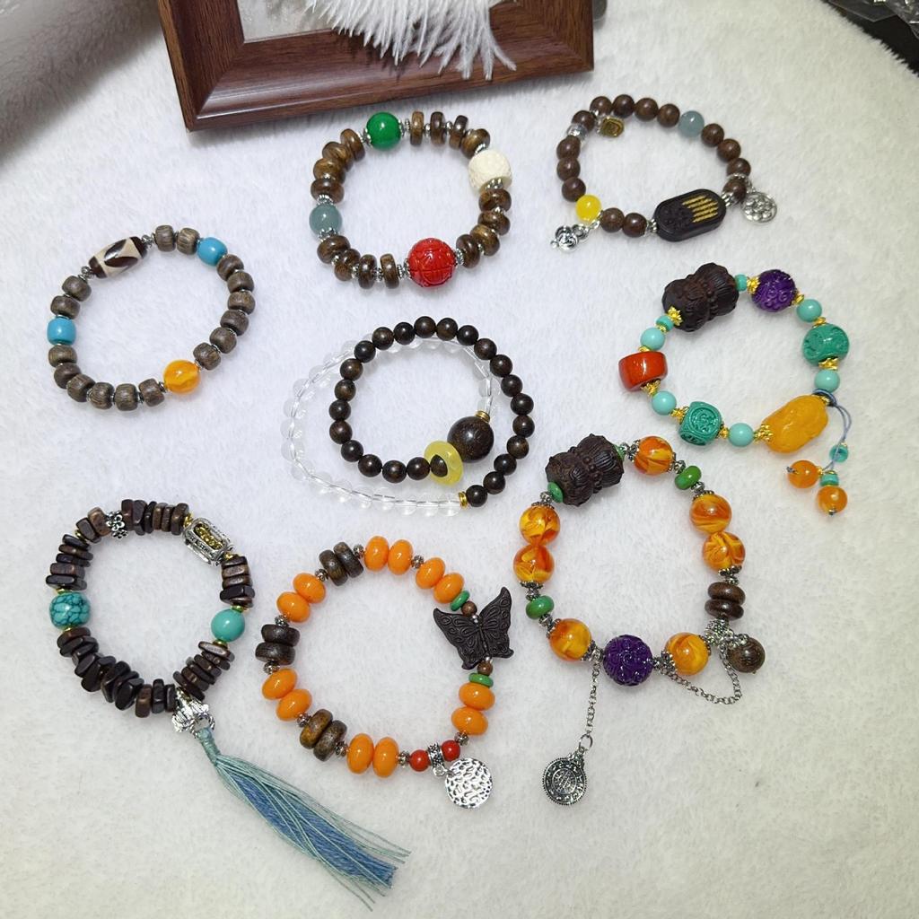 Original Chinese Agarwood Multi-Treasure Bracelet for Women - Natural Wood Beads, Retro High-End Style