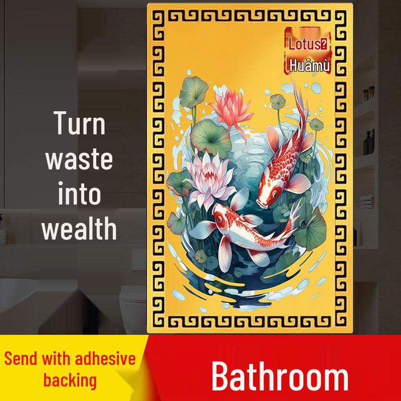 Double Fish and Lotus Flower Metal Sticker for Bathroom, Main Door, Kitchen, and Toilet