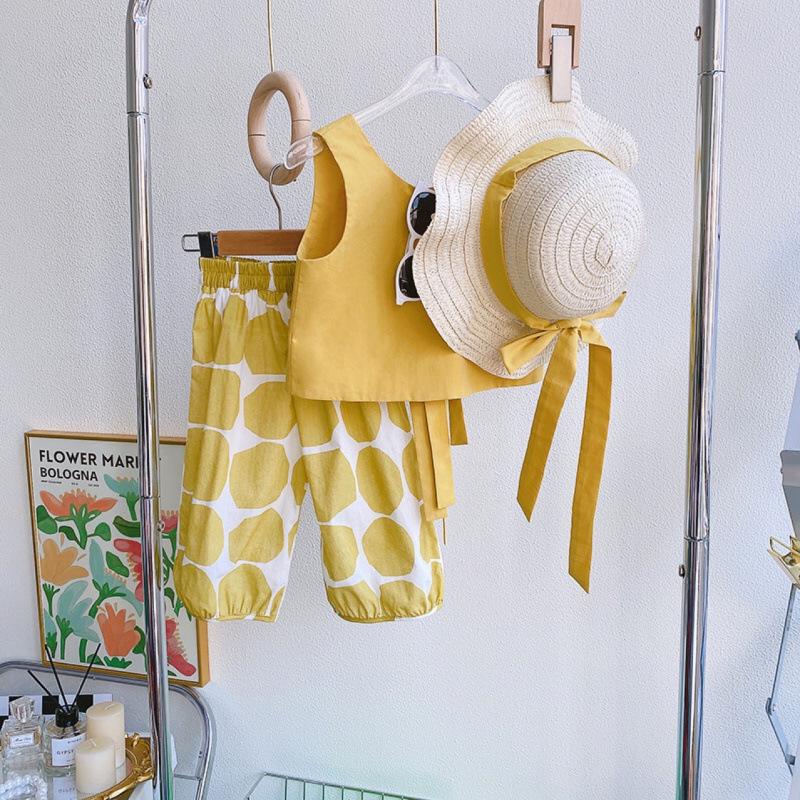 Korean Style Polka Dot Baby Girl Vest & Lantern Pants Set with Hat