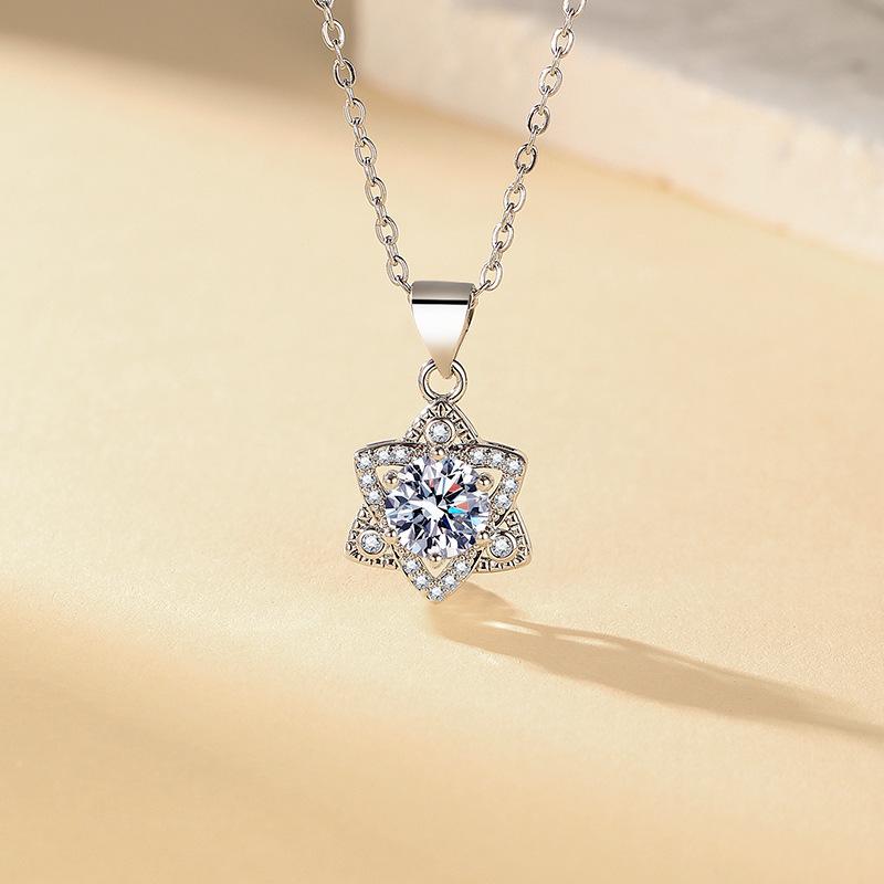 New Zirconia Flower Earrings & Hexagram Necklace: Japanese-Korean Style