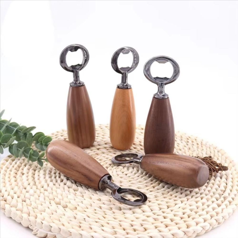Creative Beer Bottle Opener Stainless Steel Wooden Bottle Opener Beer Can Opener Kitchen Tools