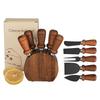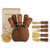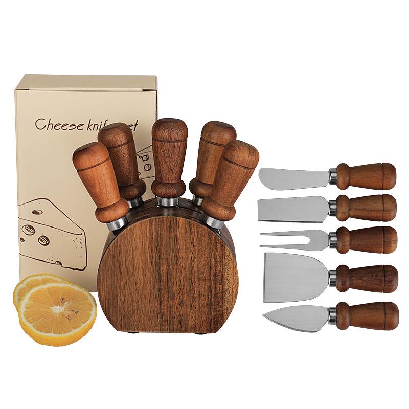 Acacia Wood Cheese Knife Set: Stainless Steel Knife, Fork, and Spatula with Storage Base