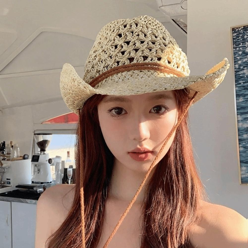 Ethnic Style Western Cowboy Hat Solid Color Cowgirl Visor Cap Classic Fisherman Hat Climbing