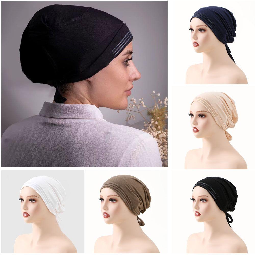 Solid Color Muslim Hijab Cap Stretch Material Inner Hijab Caps Elastic Turban Hat Islamic Wear