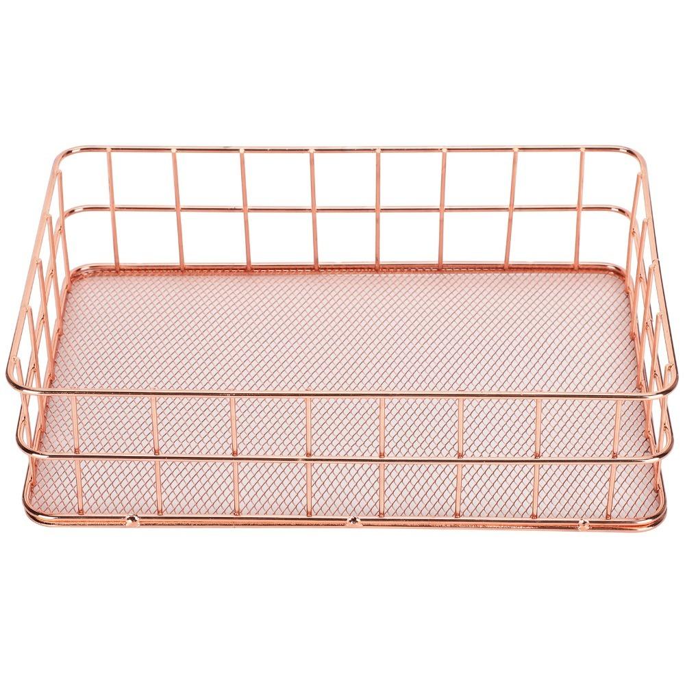 Rose Gold Desktop Organization Basket Iron Grid Wire Storage Organizer Home Office