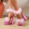 Eiyken Elegant Pink Feather Decorated Fish Mouth Zipper Sexy Ultra-high Heels Fashion Sandals Women's Night Club Dance Shoes