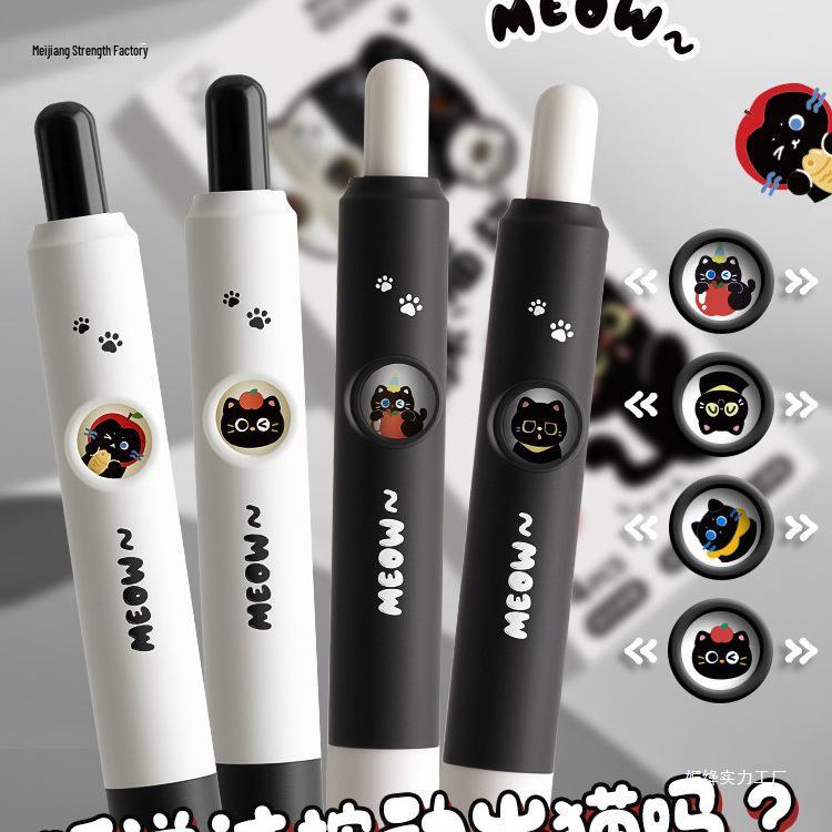 Adorable Cat Face-Changing Pen: Creative Q&A Wind-Up Head Pen, Perfect for Primary Students - Black Ink, Pack of 20