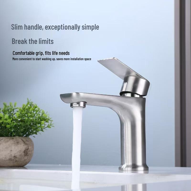 Brushed Stainless Steel Single Cold Water Washbasin Faucet for Flat or Countertop Basin
