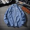 Pamuk Sonbahar Uzun kollu Kot Gömlek Erkek Moda Rahat Sokak Erkek Giyim Üst Klasik Açık Mavi Siyah Gri