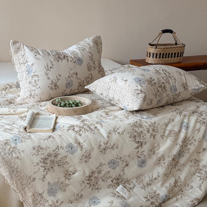 Summer Retro Cotton Linen Lace Design Thin Quilt - Machine Washable Air Conditioning Blanket