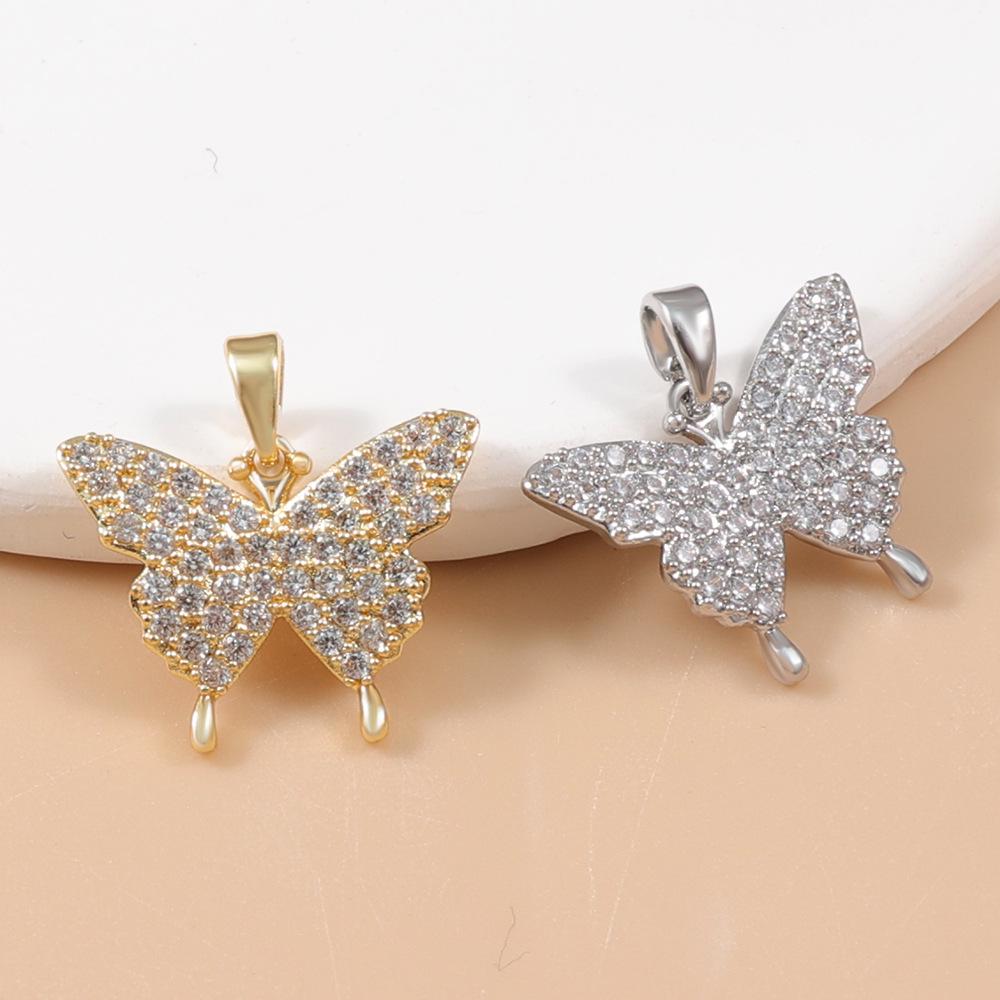 Elegant Two-Tone Butterfly Pendant with Full Diamond Design - Gold & Silver Clavicle Chain Accessories