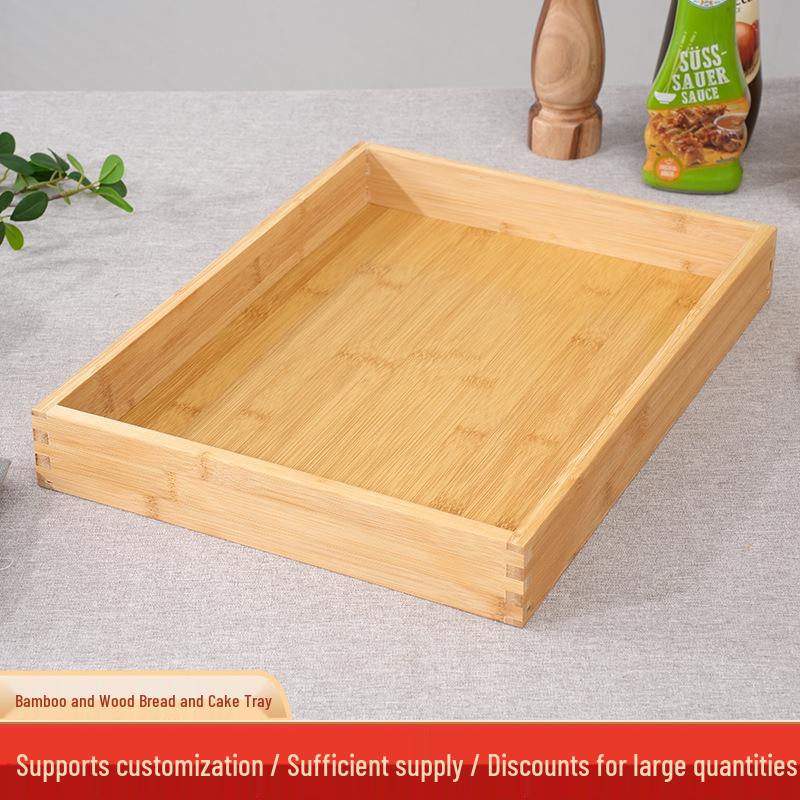 Bamboo Rectangular Wooden Tray for Bread, Cake, Pastry, and Food Display.